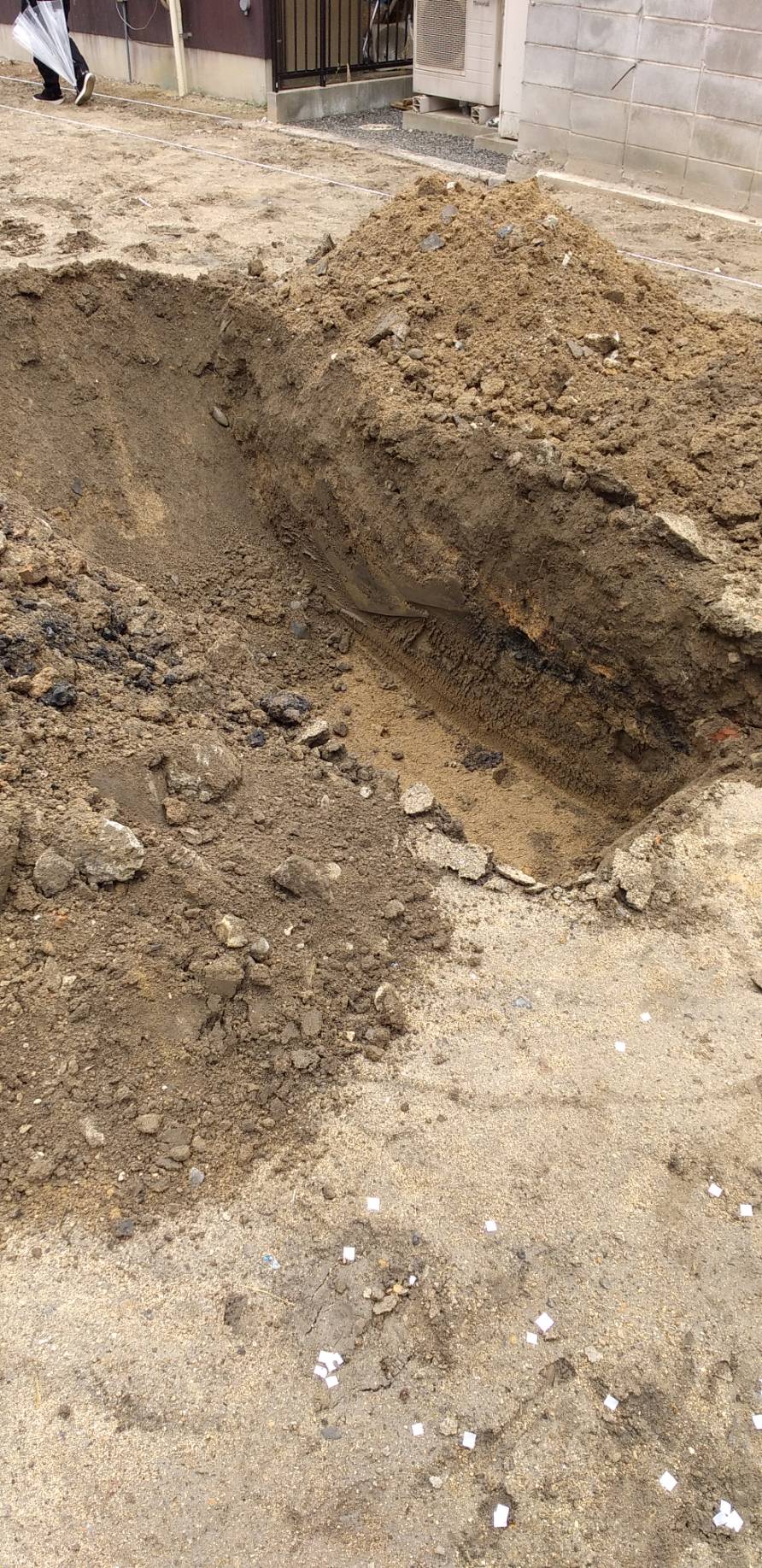 重機で1~2メートルほど地面を掘り進め調査が始まります。