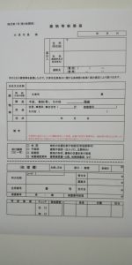 こんな用紙に記入し、地図、図面、測量図などの必要書類を添付して