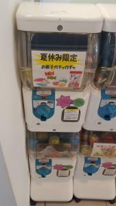 コインを入れて何が出るかわからないので、「やったー」と言う声と「あーあ」と言う子供たちの声が聞こえます。
