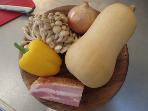 今回使ったカボチャは、「バターナッツかぼちゃ」と言って、少し変わった形をしています。