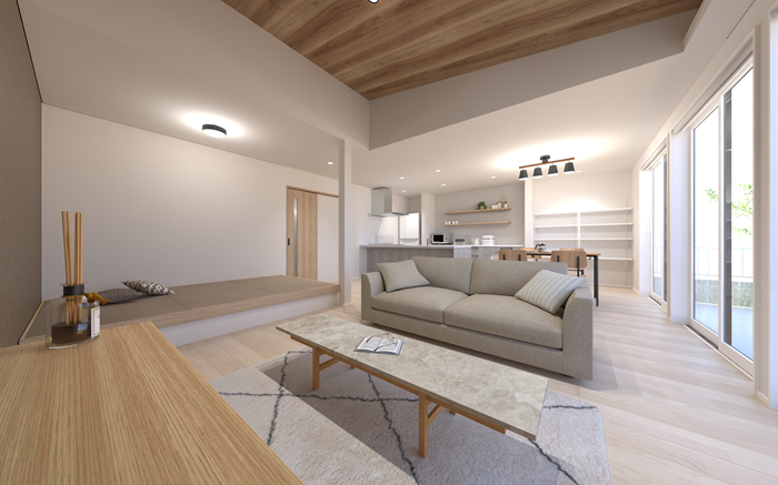 ・会話を楽しめるフルオープンキッチンや、ほっと一息つける畳コーナー
