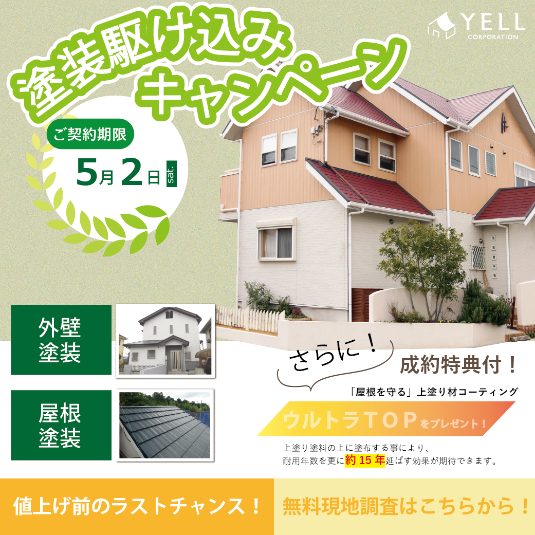 塗装をご検討の方は、値上げ前のラストチャンスです!