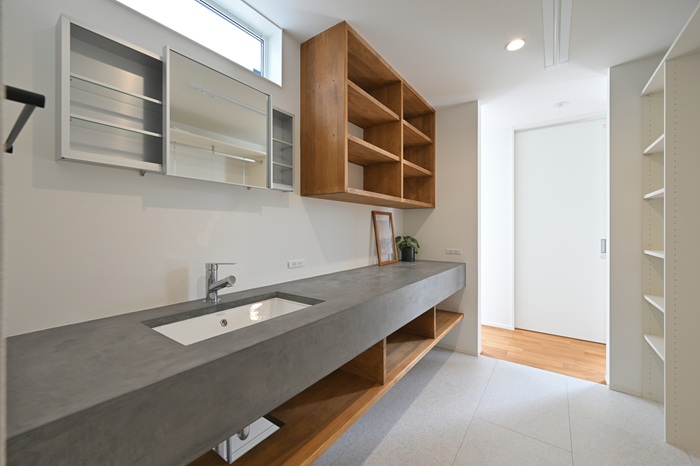 帰宅後に手洗いや着替えがスムーズに行える流れるような動線計画で設計しました。